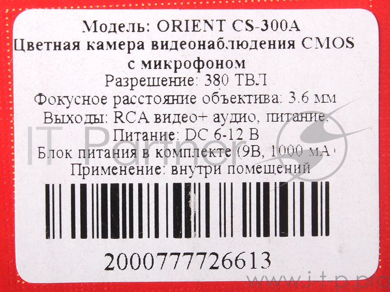 Камера наблюдения Orient CS-300A для установки внутри помещений, CMOS, цветная, аудио , для врезки в
