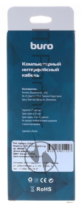 Кабель Buro BHP RET LGHT-W USB A(m) Lightning (m) 1м белый