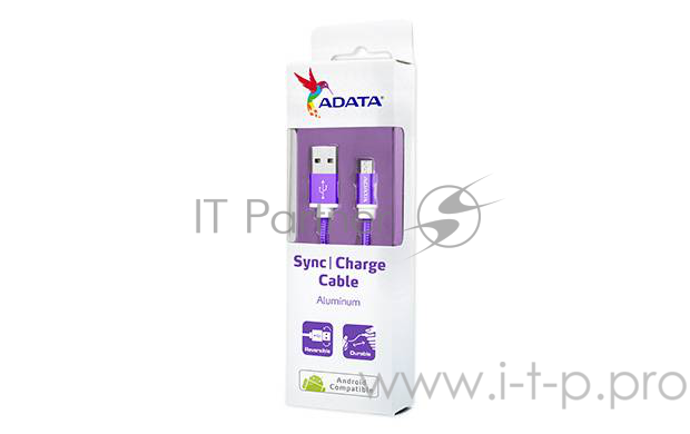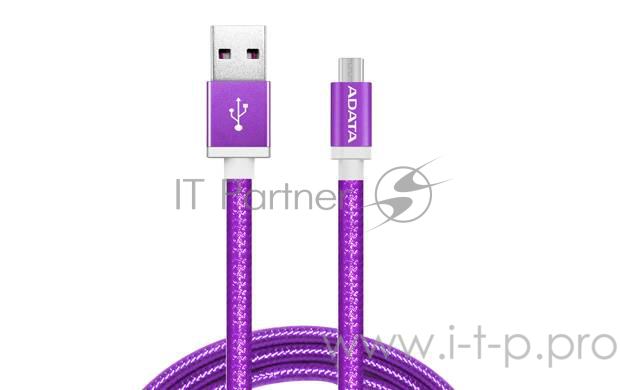 Кабель A-DATA microUSB-USB для зарядки и синхронизации 1м, металлический, Purple