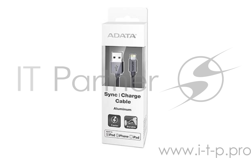Кабель A-DATA Lightning-USB для зарядки и синхронизации iPhone, iPad, iPod (сертиф. Apple) 1м, метал