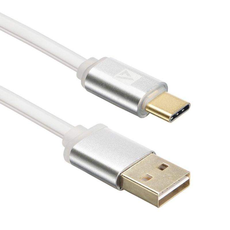 USB кабель ACD-Smart USC-C ~ USB-A 2-сторонние коннекторы, индикатор заряда, TPE, 1м, белый (ACD-U9