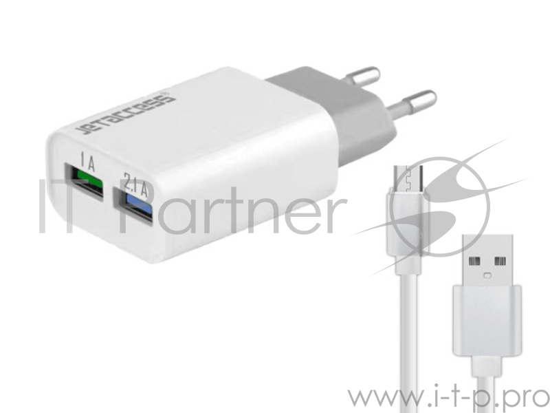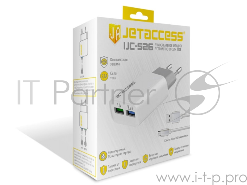 Универсальное зарядное устройство Jet.A UC-S26 от сети 220В (2USB, 2.1А, кабель microUSB), белое