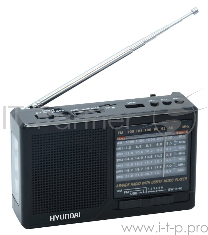 Радиоприемник портативный Hyundai H-PSR140 черный USB microSD