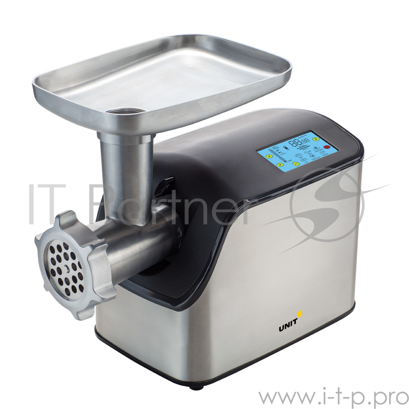 Мясорубка Электрическая UNIT UGR-460, Цвет - Черный, 1500Вт, Электронное управление, Сенсорная панель, 6 скоростей, 4 барабана для резки овощей