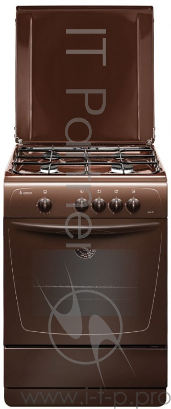 Газовая плита Гефест 1200-С7 К89 Газ-контроль духовки, штампованные направляющие, термоуказатель духовки, крышка плиты. Цвет коричневый. Полезный объем духовки - 63 литра