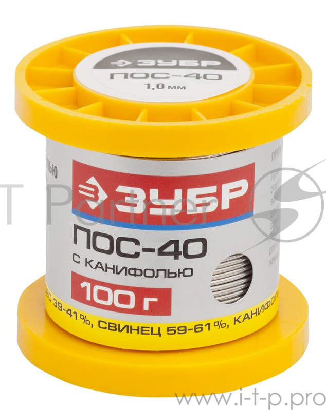 Припой ЗУБР 55451-100-10C ПОС 40 трубка с канифолью 100г 1мм