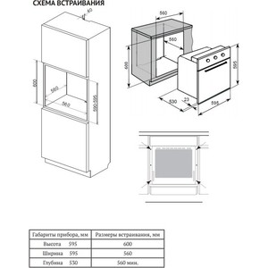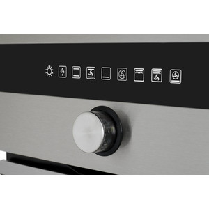 Встраиваемые электрические духовки 60 см Weissgauff 59.5х59.5x53 см, 58л, 9 режимов, утапливаемые переключатели, дисплей, электронное управление с сенсорными кнопками, гриль, конвекция, нержавеющая сталь