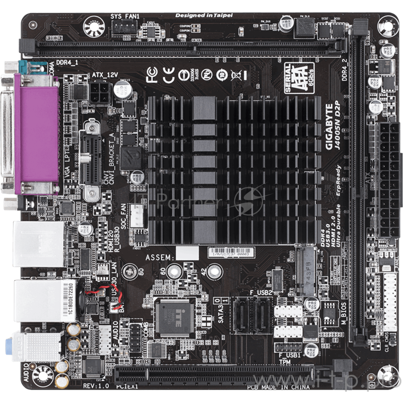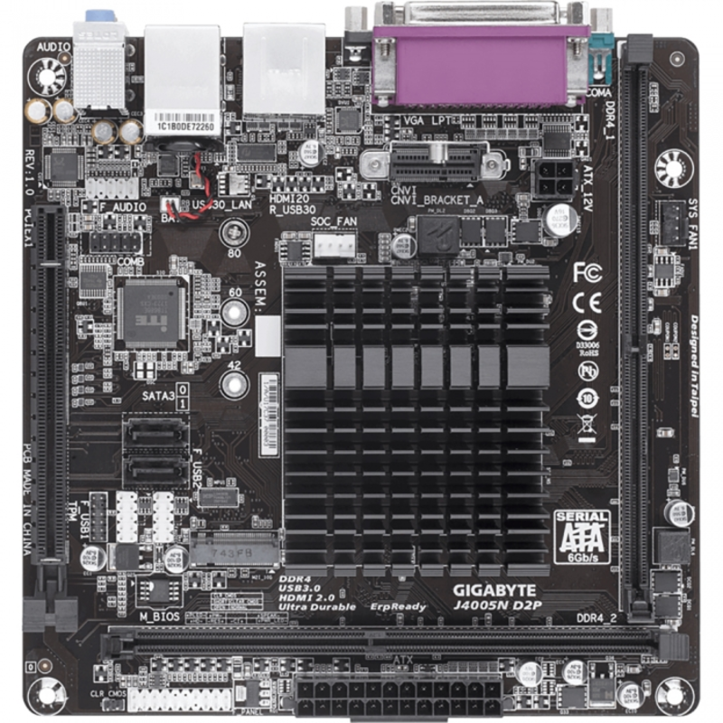 Материнская плата J4005N D2P, Intel® Dual-Core Celeron®J4005 (2.7 GHz), 2xDDR4-2400, D-SUB+HDMI, 1xPCIEx16, 2xSATA3, 1xM.2, 8 Ch Audio, 2xGLan, (0+4)xUSB2.0, (4+0)xUSB3.0, COM, LPT, Mini-ITX, RTL {10}
