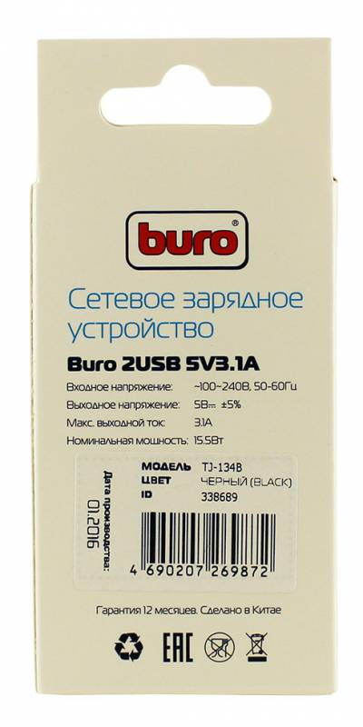 Сетевое зар./устр. Buro TJ-134b 2.1A+1A универсальное черный