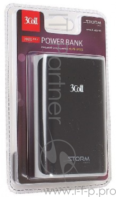 Внешний аккумулятор 3Cott 3C-PB-078SS, Storm Series, емкость 7800 мАч, вх.: 5В1А, вых1: 5В1А, вых2: 5В2.1А, прорезиненное покрытие, черный + серый