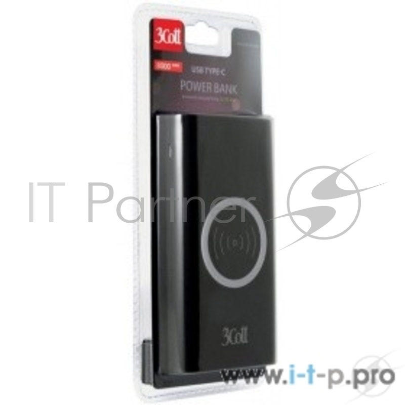 Внешний аккумулятор 3Cott 3C-PB-80A, Беспроводная, Type-C, 8000 мАч, вх.: micro USB 5В2.1А, Type-C 5В1.5А, вых USB: 5В2.1А, Qi беспроводная: 5В650mА