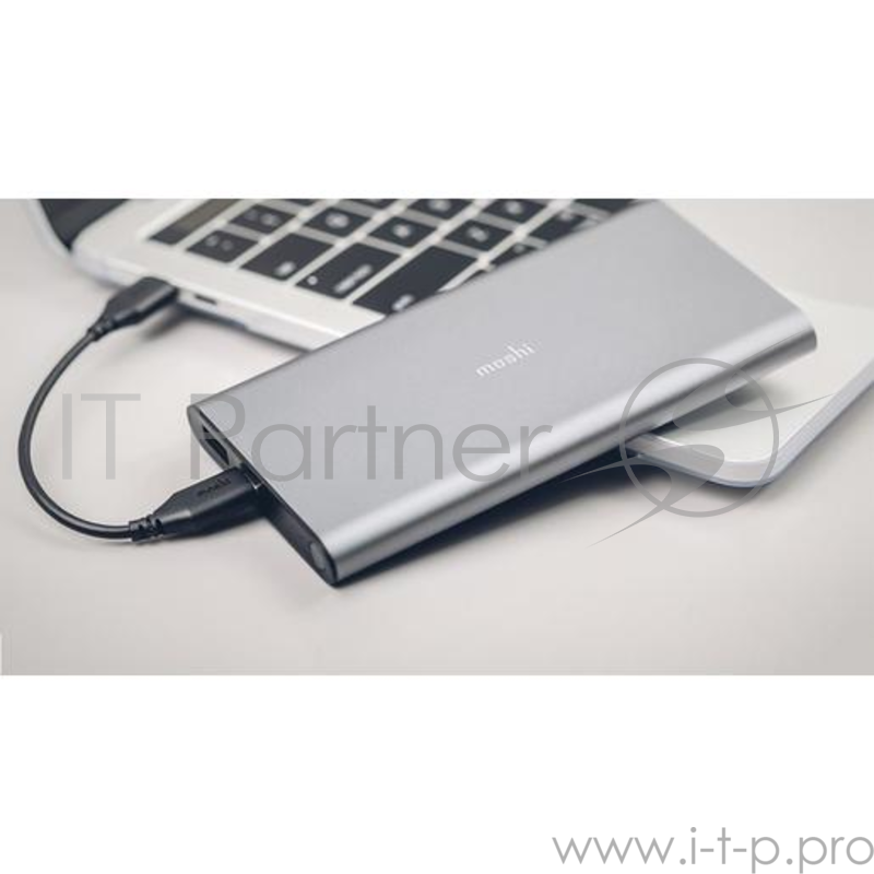Портативный аккумулятор Moshi IonSlim 10K. Емкость 10000 мАч, 2 разъема (USB-A и USB-C). Цвет серый.