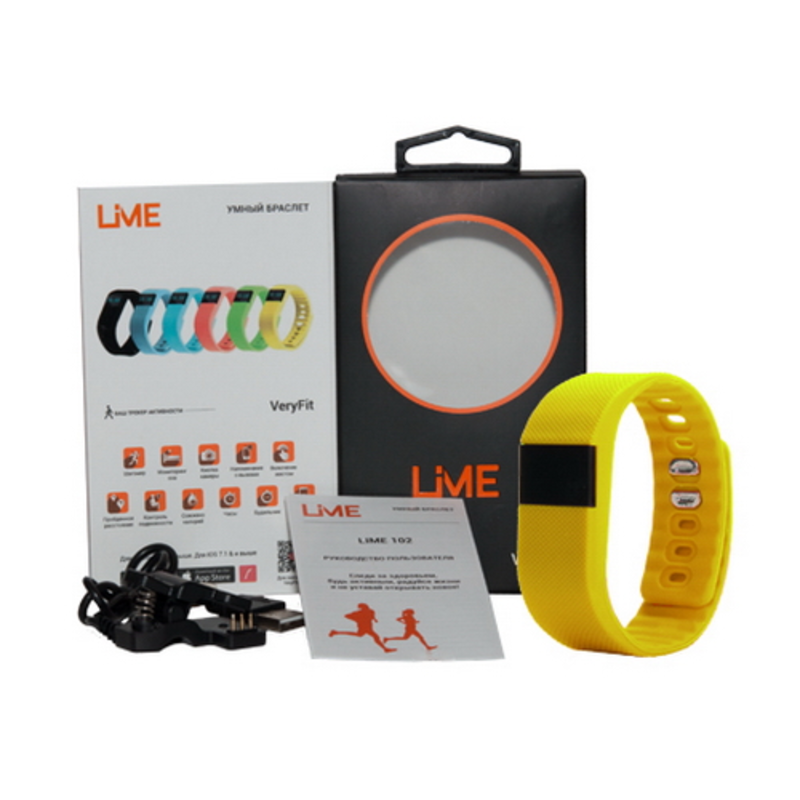Шагомер Lime 102 yellow, Подсчет калорий, Часы, Будильник, Желтый ремешок (550168)