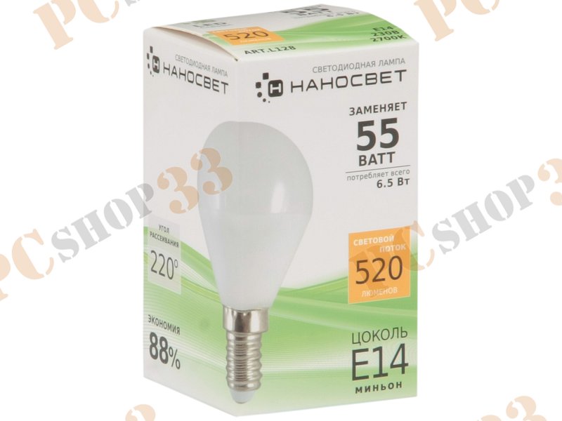Лампа светодиодная Наносвет LE-P45-6.5/E14/827 ART.L128, E14, 6.5Вт, теплый белый