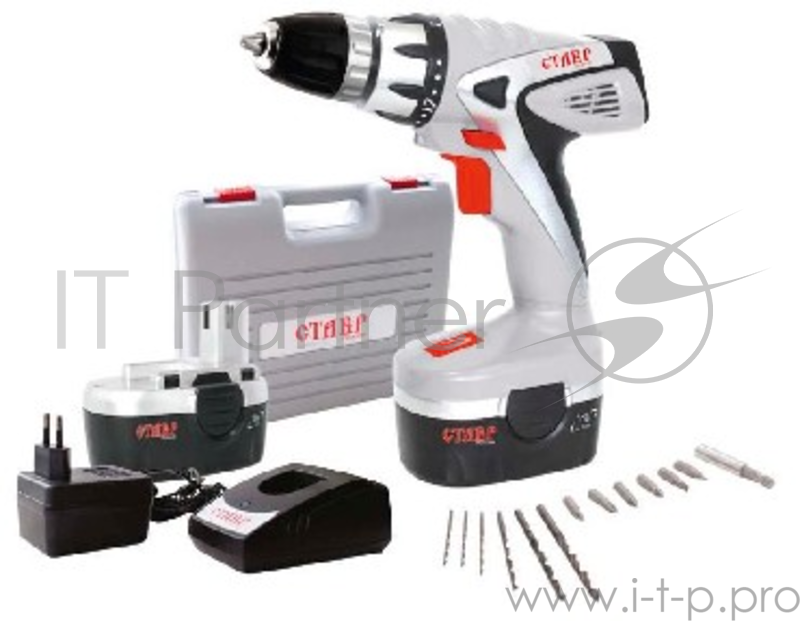 Дрель-шуруповерт безударная СТАВР ДА-18(18В, 0-550 об/мин, патрон 0,8-10мм, крутящий момент 20+1, макс.крутящий момент 12Нм, аккумулятор (NiCd) 1,2 Ач, время зарядки 3-5ч, диаметр сверления: дерево 18мм, алюминий 10мм, сталь 8мм, вес/вес с кейсом 1,6