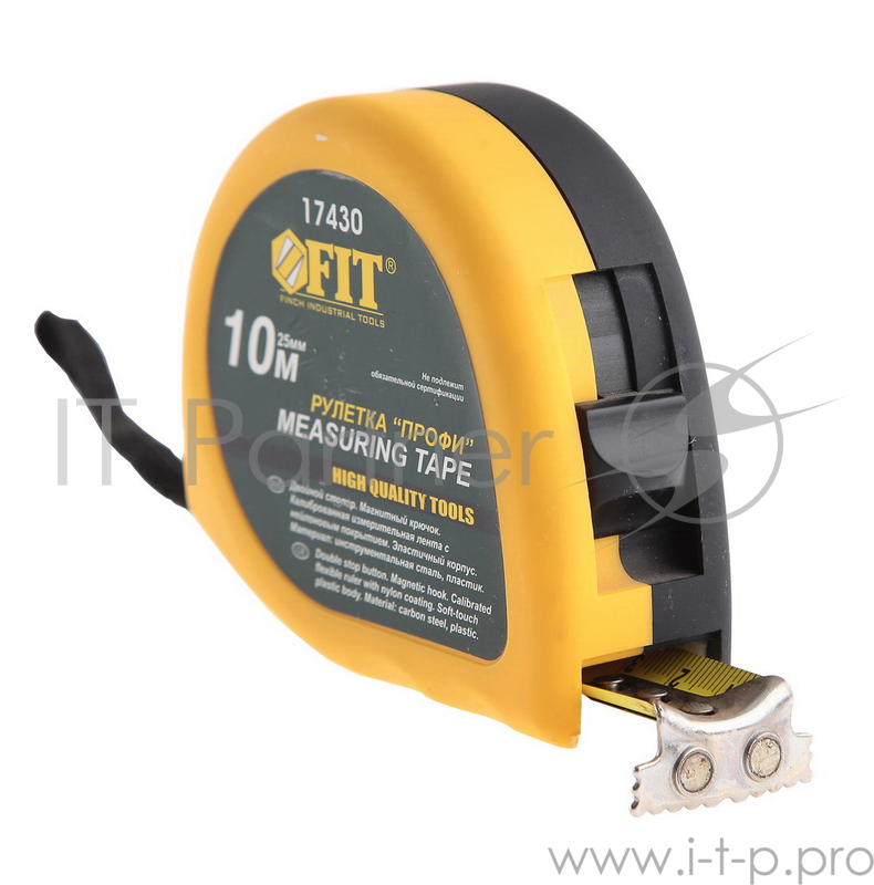 Рулетка FIT 17430 ''Профи'' 10м х 25мм, нейлон.покрытие, калибр.лента класс II, магн.крючок