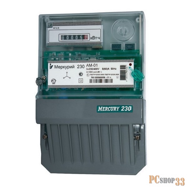 Счетчики электроэнергии Инкотекс 230AM01 Счетчик Меркурий 230 AM-01 5-60А/400В, трехфазный однотарифный, МЕХ