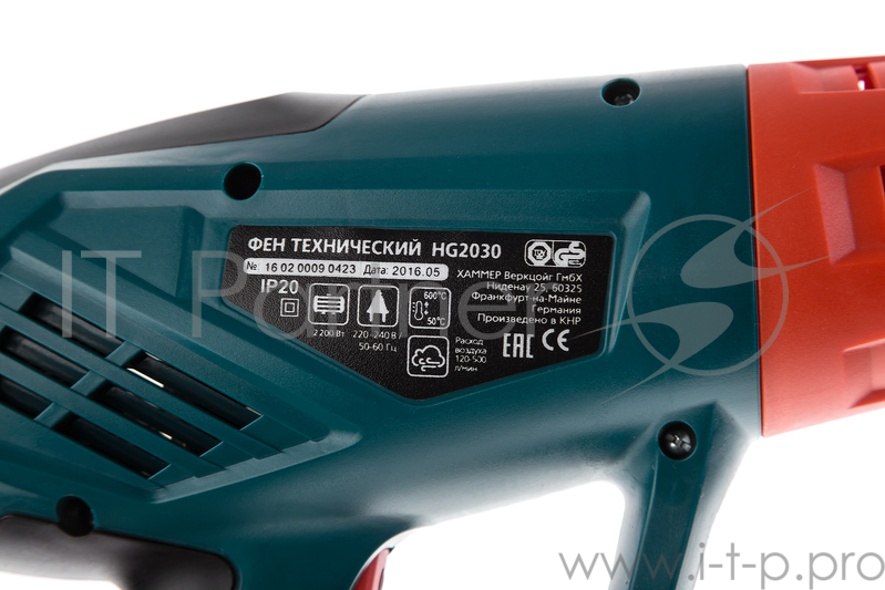 Фен техн. HAMMER HG2030 PREMIUM 2200Вт 50/50-600С 250-500л/мин кейс, насадки, тепл.защита