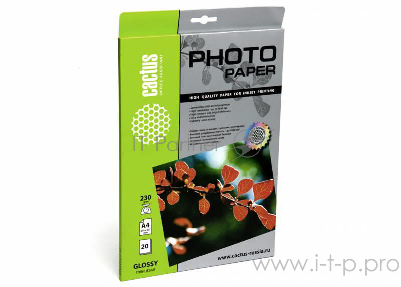 Бумага CACTUS GA423020 Фотобумага CS-GA423020 глянцевая , А4, 230 г/м2,20 листов