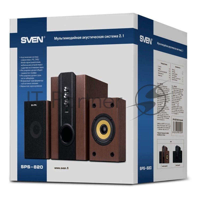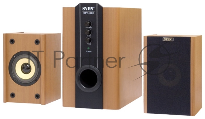 Колонки SVEN SPS-820, дерево {2.1, 2 сат. + сабвуфер,18 Вт + 2 х 10 Вт (RMS) , усил. - 20-20000 Гц, дерево}