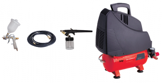 [Компрессоры] FUBAG PAINT MASTER KIT Компрессор+набор из 3 предметов [8213875KOA609 (8213875KOA538)] {Реси- вер, л 6 Произ- водит., л/мин 180 Давле- ние, бар 8 Мощность, кВт1.1 Напря- жение, В 220 Вес, кг 12.4}