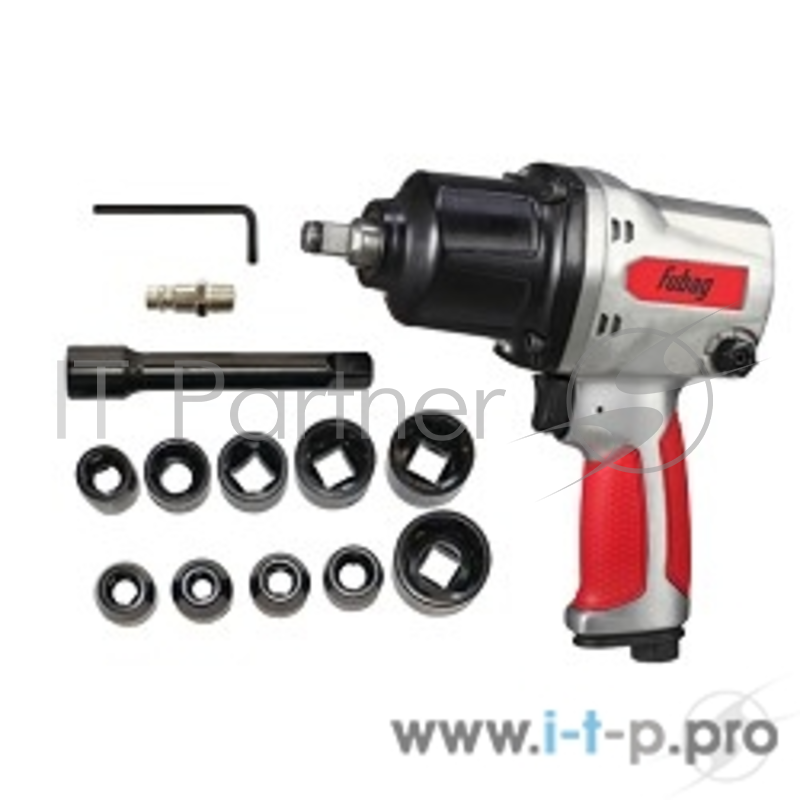 Пневматическое оборудование FUBAG Пневмогайковерт ударный IW900 1/2" (185л/м_880Нм_6.3бар_1/2") + набор головок_кейс 100195