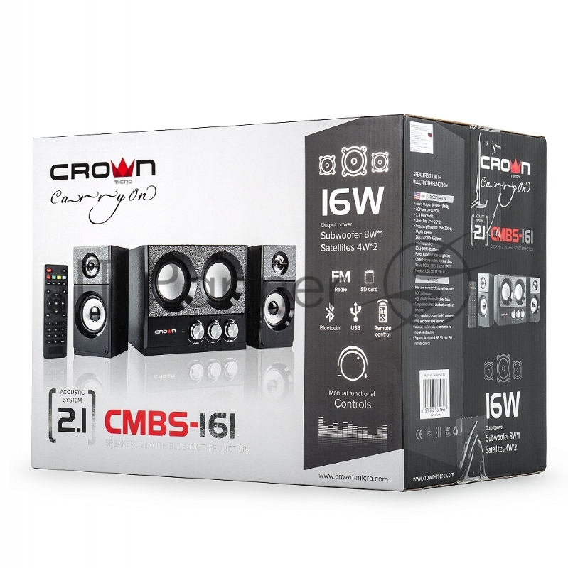 Колонки Акустическая система 2.1 CROWN CMBS-161 (МДФ, Bluetooth, 8W+4W*2=16W приёмник FM картридер интерфейс USB IR пульт)