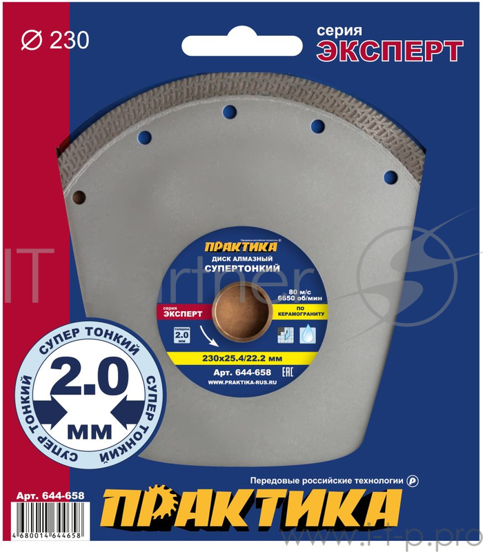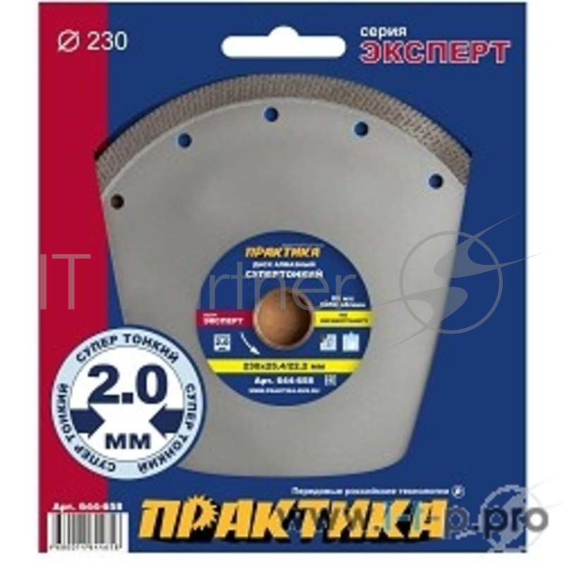 Диски отрезные, пильные, шлифовальные Диск алмазный ПРАКТИКА "Супер тонкий" 230 х 22/25,4 мм, толщина 2,0 мм по керамограниту 644-658