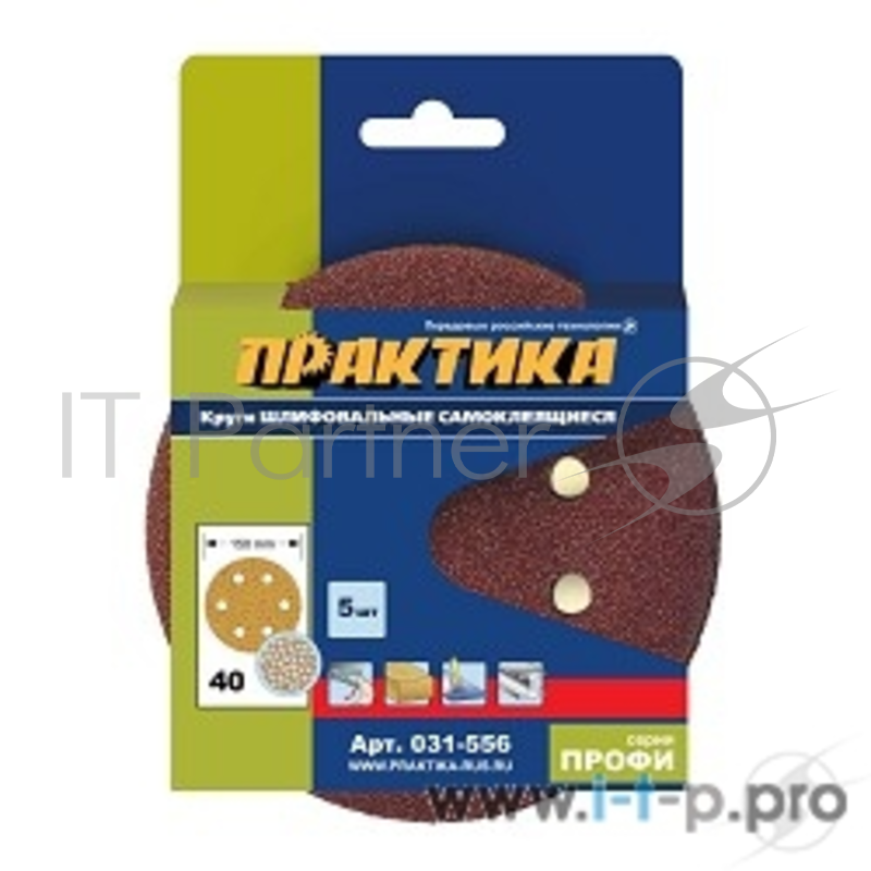 Круги шлифовальные на липкой основе 6 отверстий ПРАКТИКА 150 мм Р40 уп 5шт [031-556]