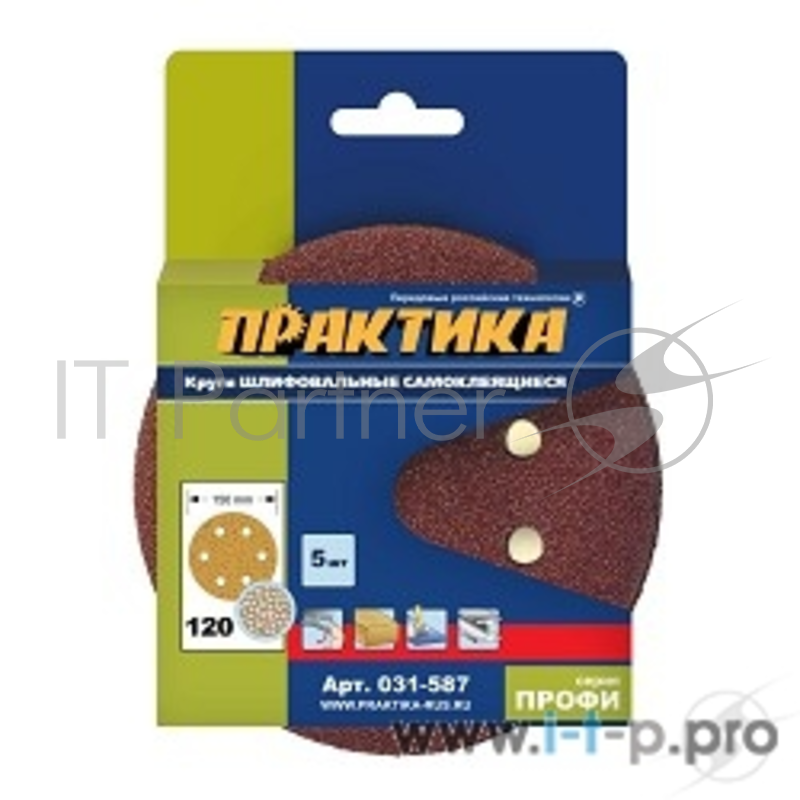 Круги шлифовальные на липкой основе 6 отверстий ПРАКТИКА 150 мм Р120 уп 5шт [031-587]
