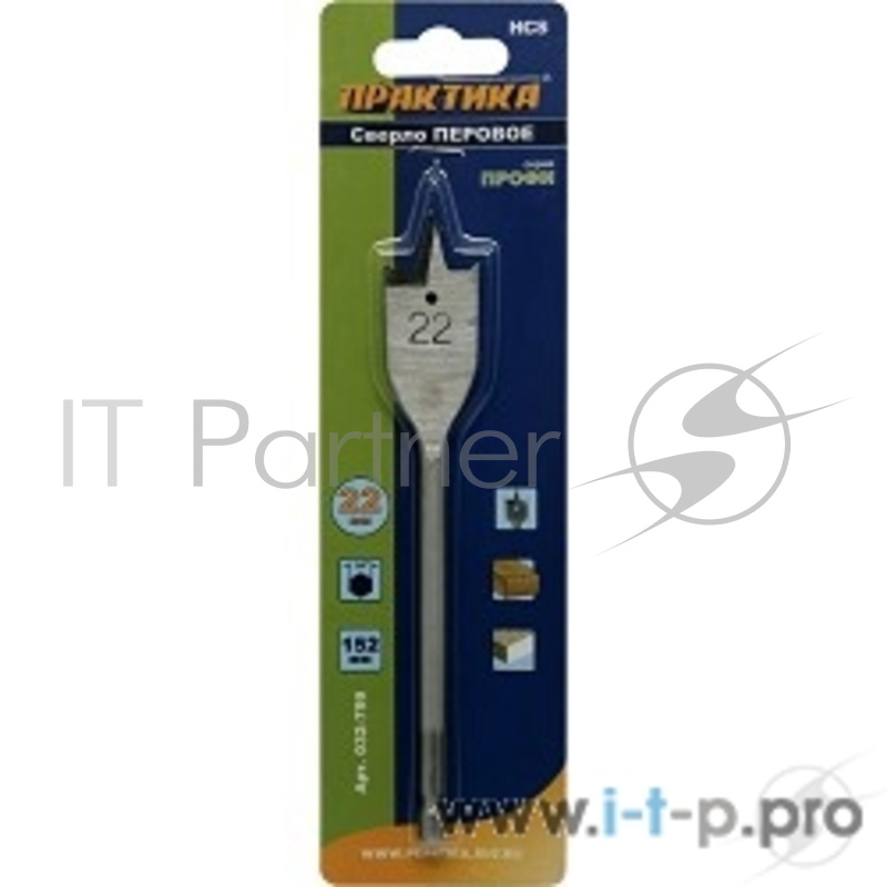 Сверла,коронки,наборы Сверло ПРАКТИКА перовое по дереву 22 х 152 мм в блистере [032-799]
