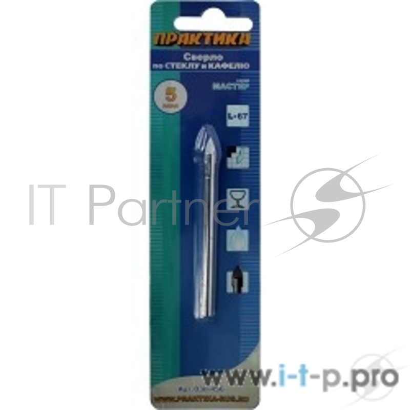 Сверла,коронки,наборы Сверло по стеклу ПРАКТИКА ф 5 мм блистер [038-456]