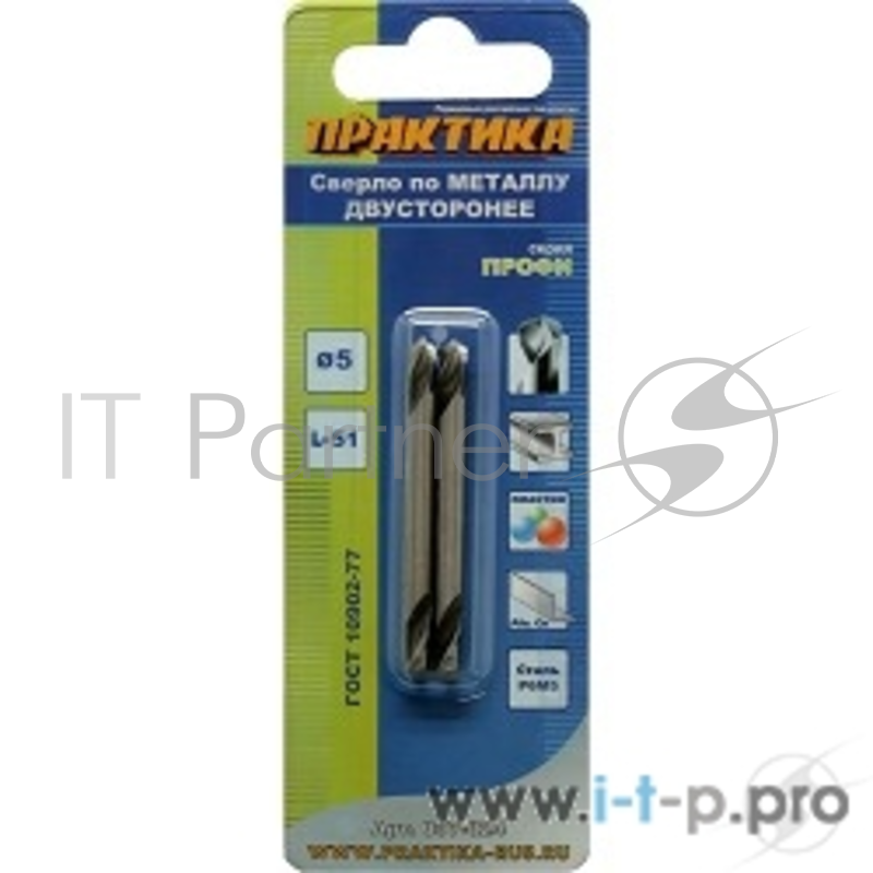 Сверла,коронки,наборы Сверло по металлу ПРАКТИКА ф 5,0 мм двустороннее, 2 шт в блистере [037-824]