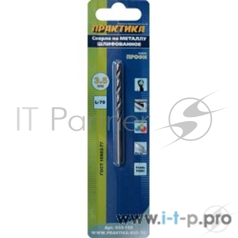Сверла,коронки,наборы Сверло по металлу ПРАКТИКА ф 3,5 х 70 мм блистер [033-192]