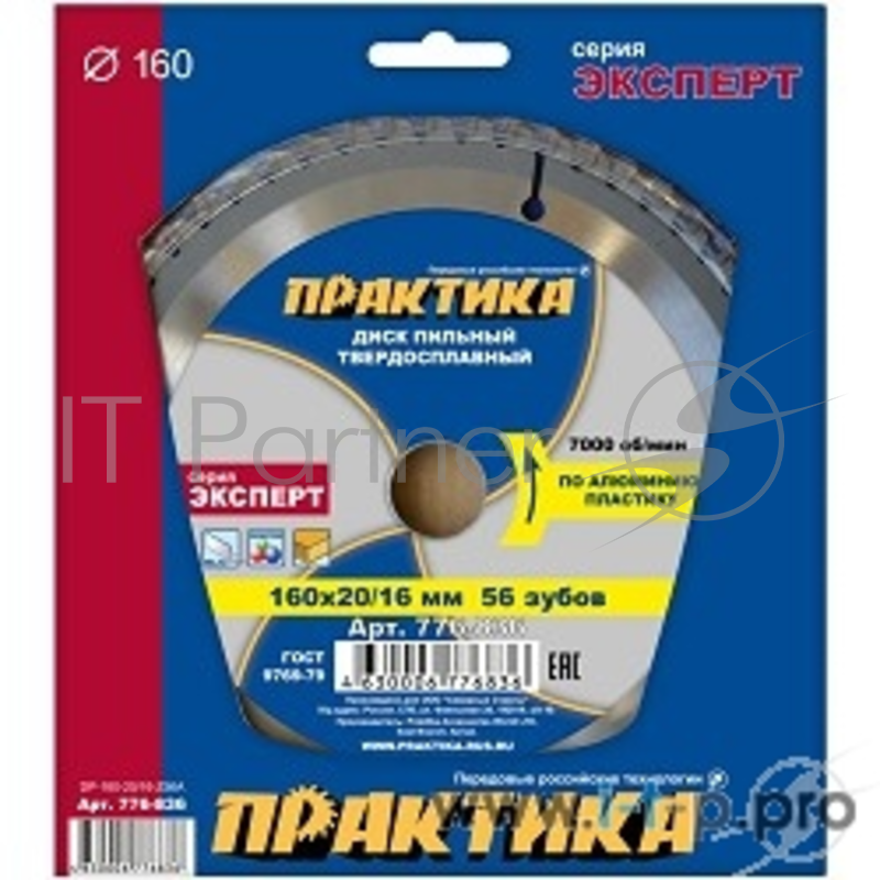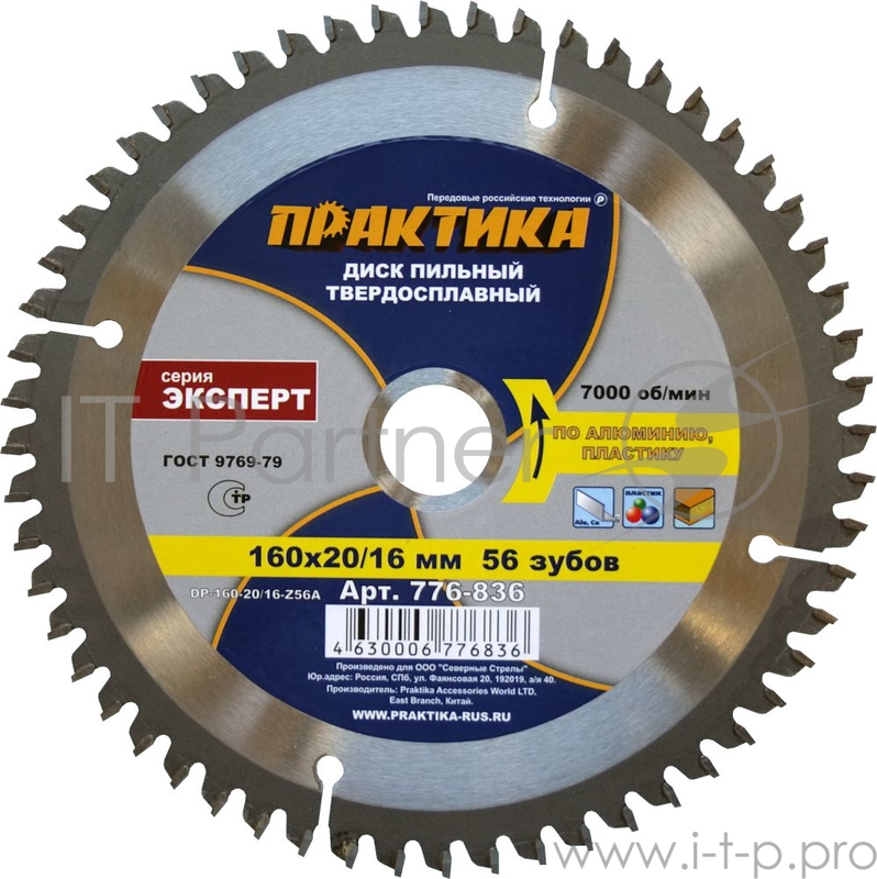 Диски отрезные, пильные, шлифовальные Диск тв/сп ПРАКТИКА 160х20/16 Z=56 T=1,8 mm [776-836]