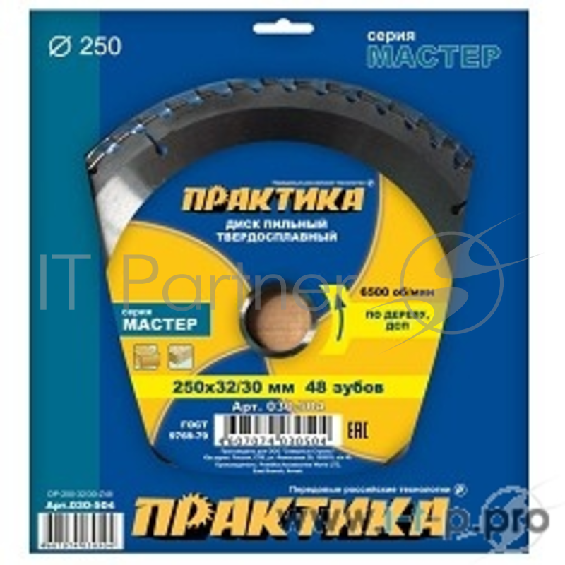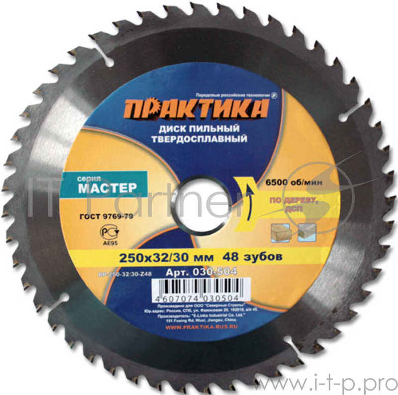 Диски отрезные, пильные, шлифовальные Диск тв/сп ПРАКТИКА 250х32/30 Z=48 T=2,9 mm [030-504]