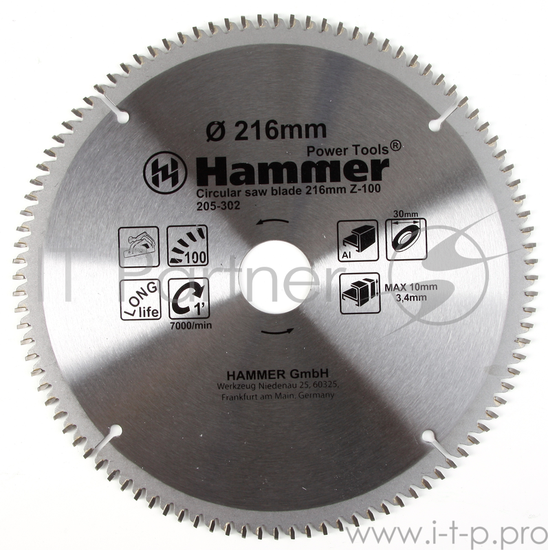Диски отрезные,пильные,шлифовальные Диск пильный Hammer Flex 205-302 CSB AL 216мм*100*30мм по алюминию [30682]