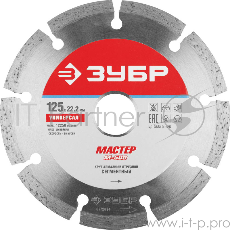 Круг алмазный ЗУБР 36610-125 МАСТЕР сегментный сухая резка 22.2х125мм