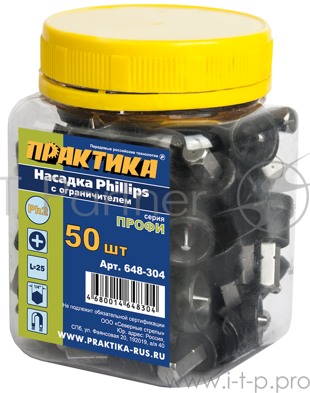 Набор бит ПРАКТИКА 648-304 ПРОФИ PH-2х25мм для гипрока с ограничителем 50шт