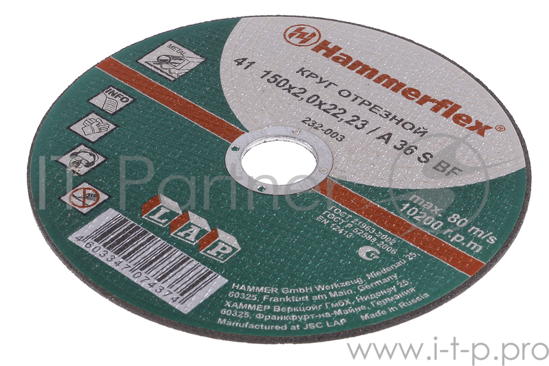 Круг отрезной 150 x 2.0 x 22,23 A 36 S BF Hammer Flex 232-003 по металлу