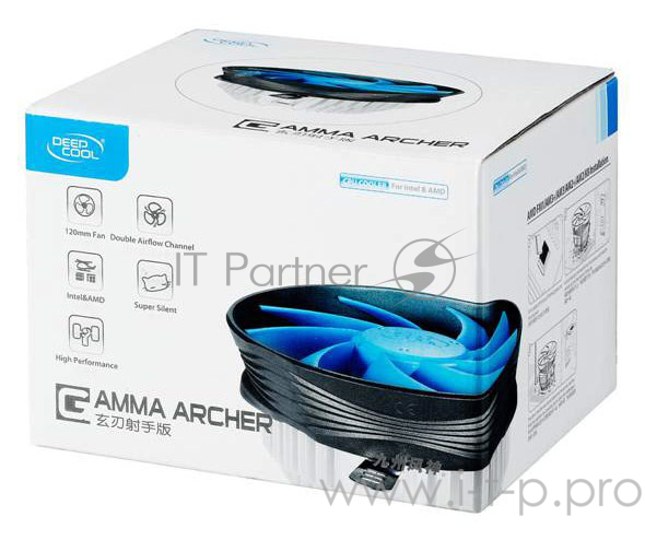 Вентилятор Cooler Deepcool GAMMA ARCHER {Soc-1150/1155/1156/AM2+/AM3+/ 3pin, 21dB, Al, 95W, 301g, clamp}