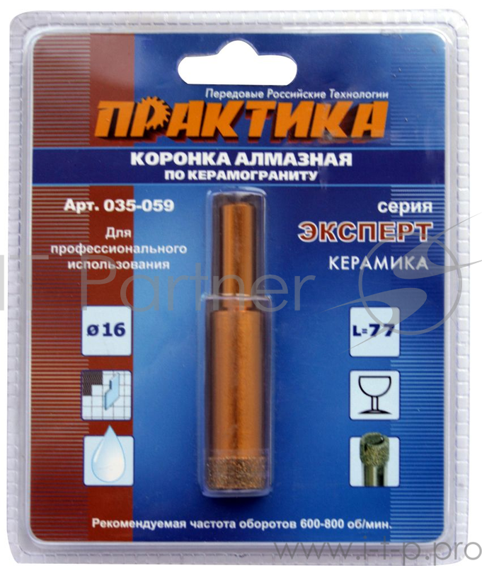 Коронка алм. ПРАКТИКА 035-059 16мм по керамограниту