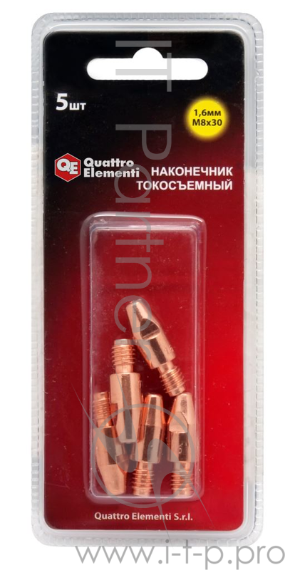 Наконечник токосъемный QE (ERGUS) M8x30 771-299 1.6мм 5шт. в блистере д/горелки полуавтомата