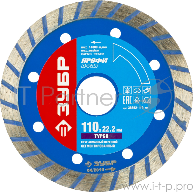 Круг алмазный ЗУБР 36652-110_z01 сегментированный сухая и влажная резка 22.2х110мм