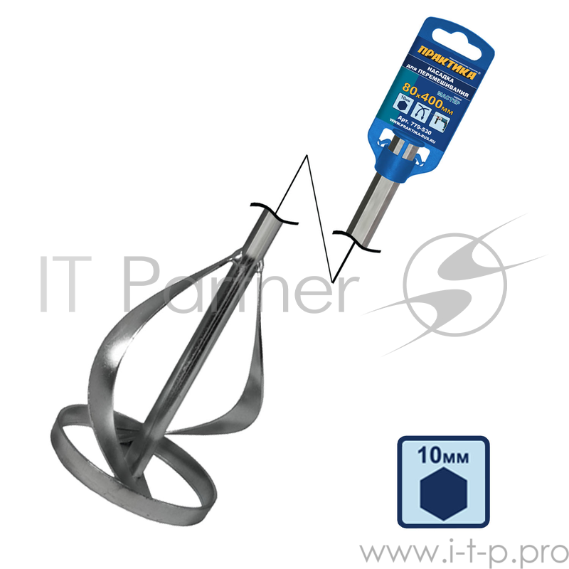 Насадка для перемешивания ПРАКТИКА 779-530 80х400мм, хв.HEX10, лаки, краски