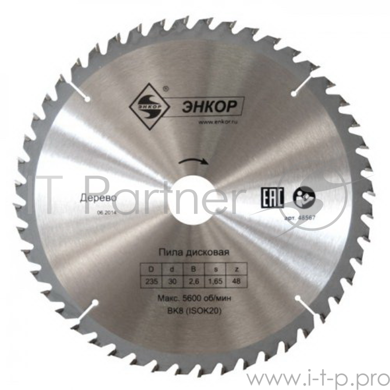 Круг пильный твердосплавный ЭНКОР 48548 ф200х30мм z24 дерево