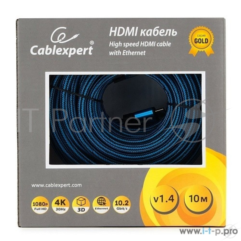 Кабель Кабель HDMI Cablexpert, серия Gold, 10 м, v1.4, M/M, синий, позол.разъемы, алюминиевый корпус, нейлоновая оплетка, коробка (CC-G-HDMI01-10M)