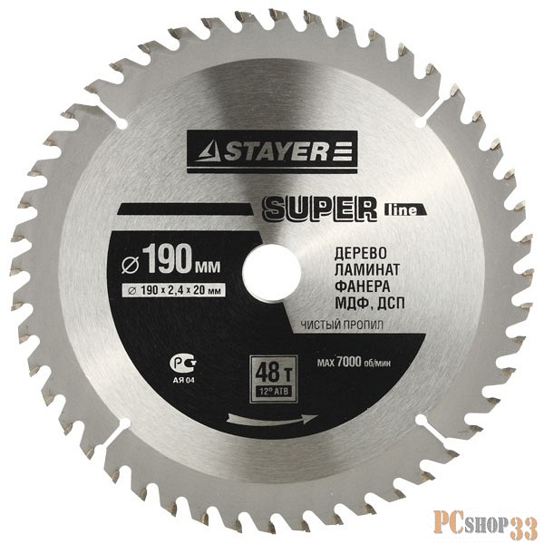 Круг пильный твердосплавный STAYER MASTER 3682-185-20-48 super-line по дереву 185x20мм 48T