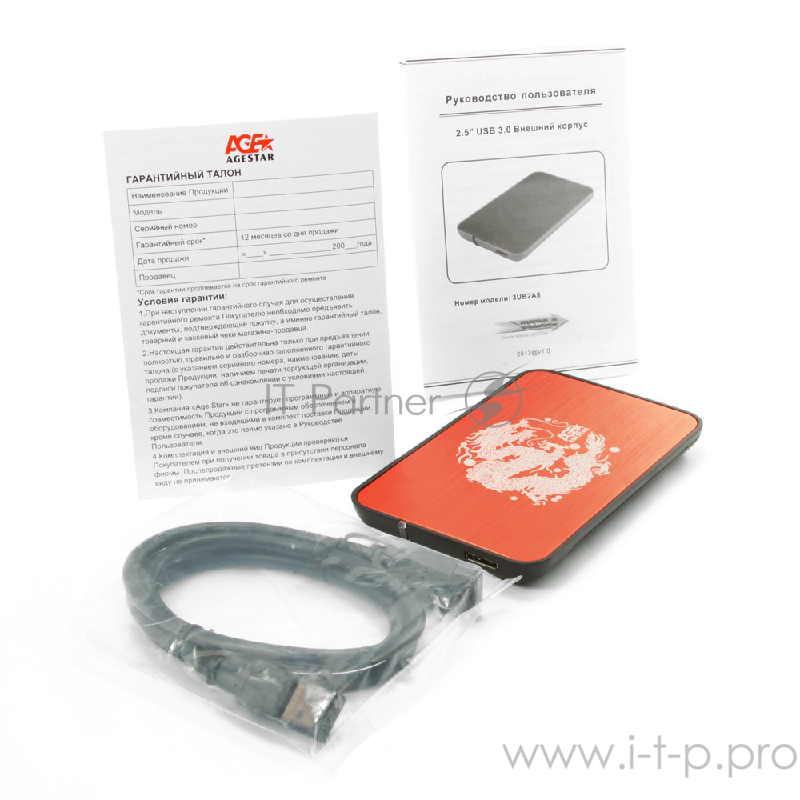 Контейнер для HDD AgeStar 3UB2A8 RED USB 3.0 Внешний корпус 2.5" SATA AgeStar 3UB2A8 (RED) USB3.0, сталь+пластик, безвинтовая конструкция, крышка из нержавеющей стали, красный 09682