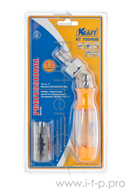 Отвертка реверсивная KRAFT КТ 700408 рукоятка со вставками 13 в 1